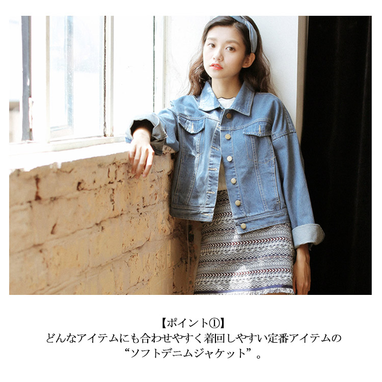 | ベーシックなデザインの長袖デニムジャケット♪コンパクトなショート丈でどんなボトムスとも好相性♪ゴワゴワしない肌に優しいソフトな風合い。着回し力抜群の大人カジュアルにはかかせないアイテムです。 | |