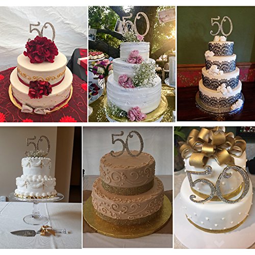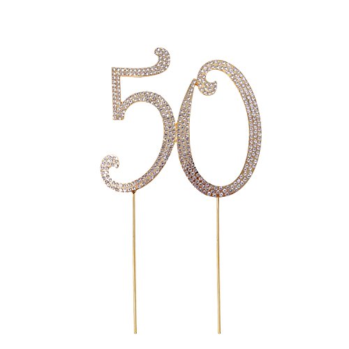 Honbay 50 Cake Topper Gold for Golden Anniversary or Birthday Premium Rhinestone Cake Topper Decoration for Your Party