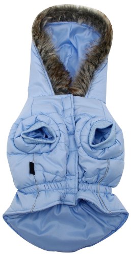 -. Title : Dogit Dog Coat with Faux Fur Trimmed Hoodie, X-Large, Frosted Blue
