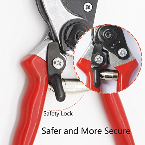 SAFE GARDENING TOOL- The garden pruner come with a safety lock, so once you close them you can lock the blades when not in use. To use the lock, you simply close the blades then slide the lock in place to keep them securely closed.