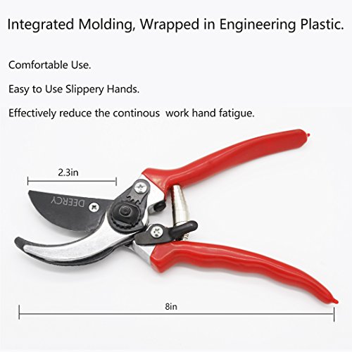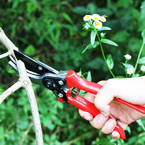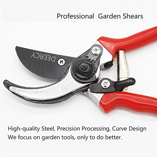 Pruning Shears by Deercy, Garden Shears, Hand Pruner, Sharp Tree Trimmers Secateurs Hand Pruner Clippers with Safety Lock. (red)