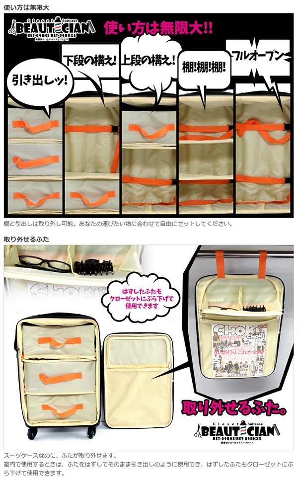 棚と引出しは取り外し可能。あなたの運びたい物に合わせて自由にセットしてください。■取り外せるふた