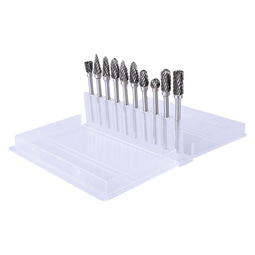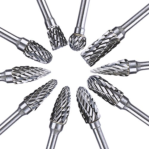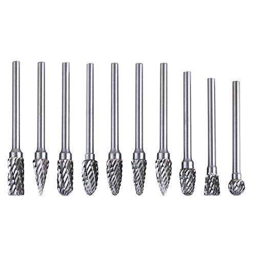 Longruner 1 Set Double Cut Carbide Rotary Burr (10 Pieces 3X6MM Tungsten Steel Tungsten Carbide Rotary Bits) Diamond Burrs for Woodworking Drilling Carving Engraving LC02