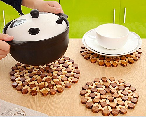 - DECORATION: Natural bamboo and wood color with beads design, makes a great decorative accent on the table, under casseroles, candles and more