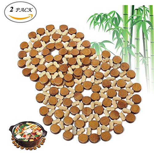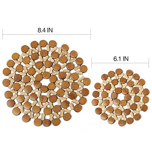 Flee Decorative Bamboo Trivets Mat For Hot Dishes Pot Coasters Bowl Plate Holders 1 Small and 1 Medium