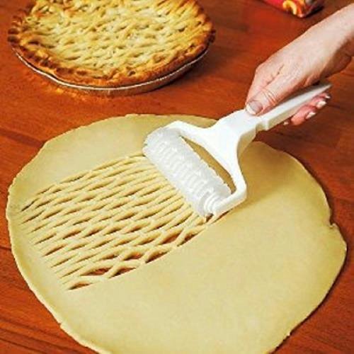 White Lattice Design Roller Cutter Pie Crust Pastry Dough (Comes with Free How to Live Stress Free Ebook)