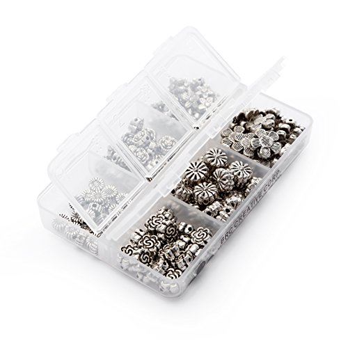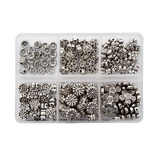 BRCbeads Top Quality Assorted Flower Tibetan Silver Flower Metal Spacer Beads Mix Lot 120pcs per Box For Jewelry Making Findings (Included Plastic Container )