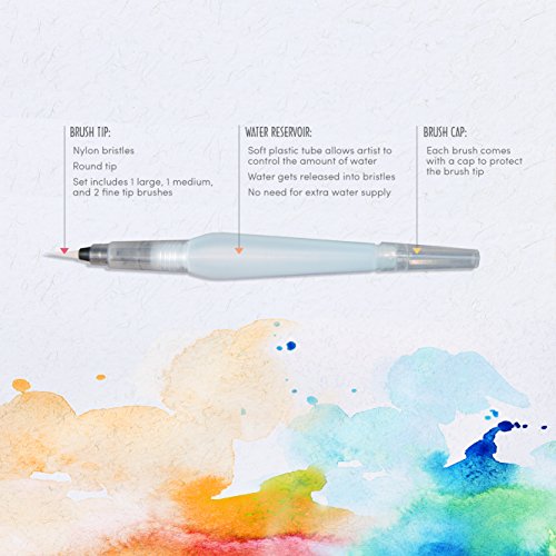 - Many Uses – Water brush pens are perfect for watercolor painting, ink, sketches, watercolor pencils, lettering, and more.