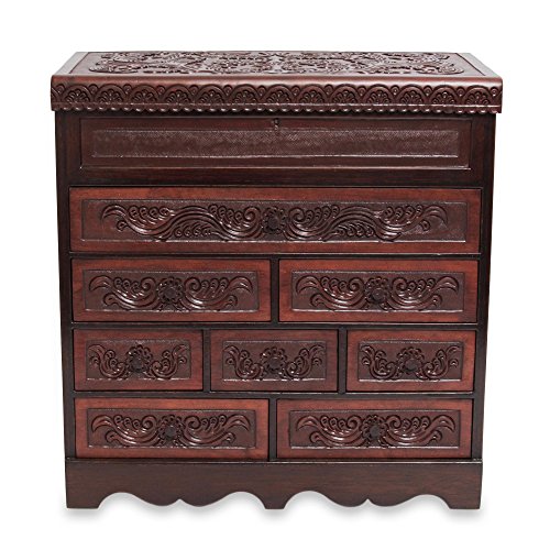 NOVICA 'Floral Delight' Cedar And Leather Jewelry Box