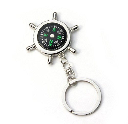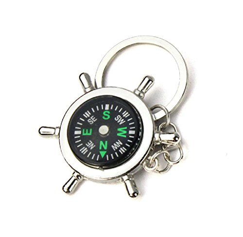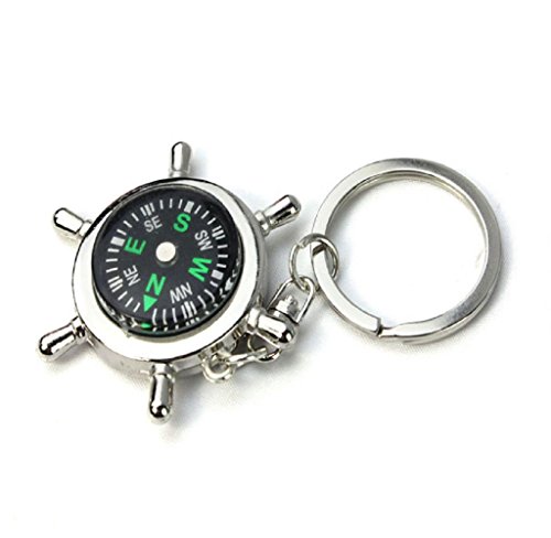-. Title : LEERYA Newest Portable Alloy Silver Nautical Compass Helm Keychain Ring Chain