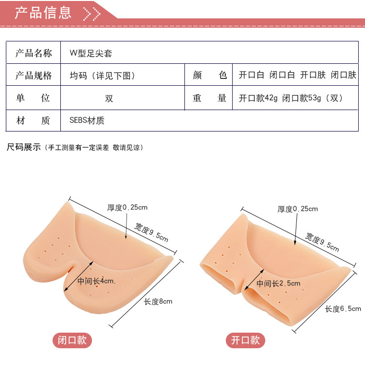 穴SEBS足指カバー保護カバー厚いスーパーソフトつま先着用インソールとW型つま先セット