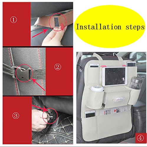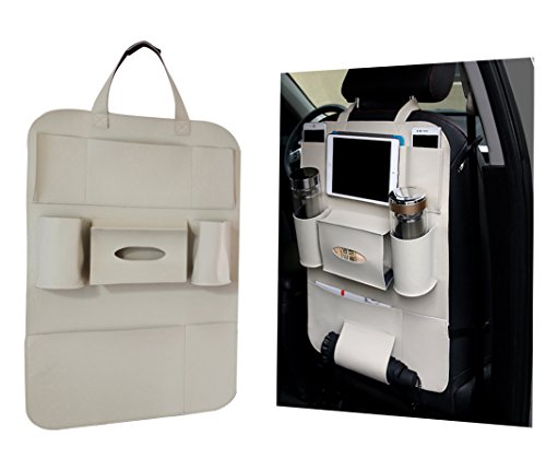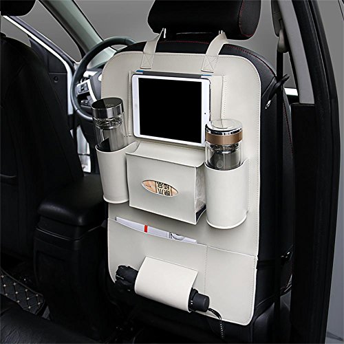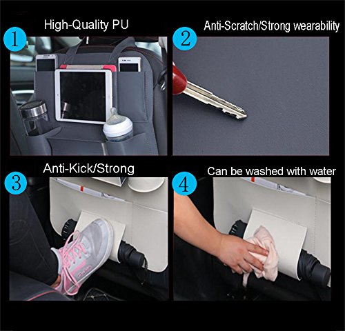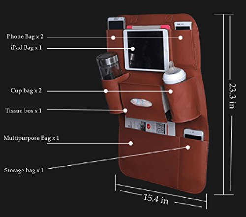 Back Seat Organizer for Car, Water-Repellent Leather Car Seat Back Organizer with Protective iPad, Phone, Cup, Umbrella, Tissue / Seat Cover with 6 Pockets