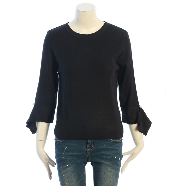 SATIN, 독특한 소매 포인트로 트랜디한 니트 티셔츠입니다