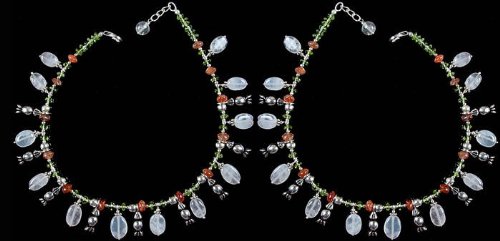 -. Title : Multi color Gemstone Anklets (P.R.Ice Per Pair) - Sterling Silver