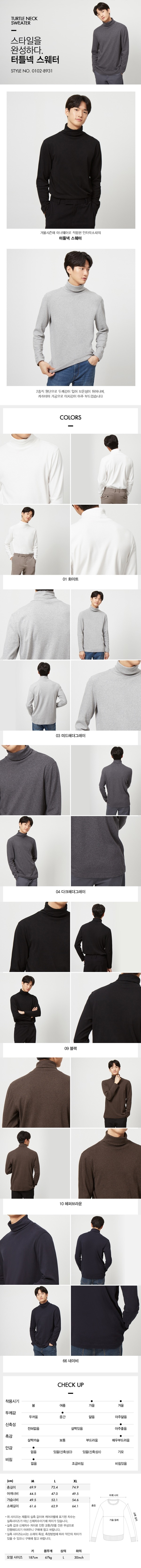 캐시미어 가공으로 터치감이 아주 부드러운 터틀넥 스웨터 입니다.
