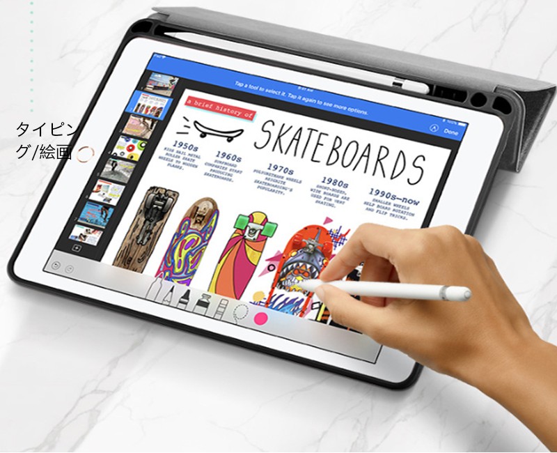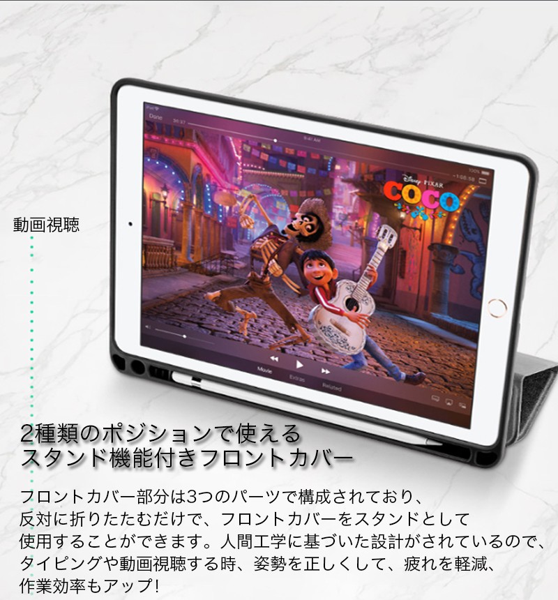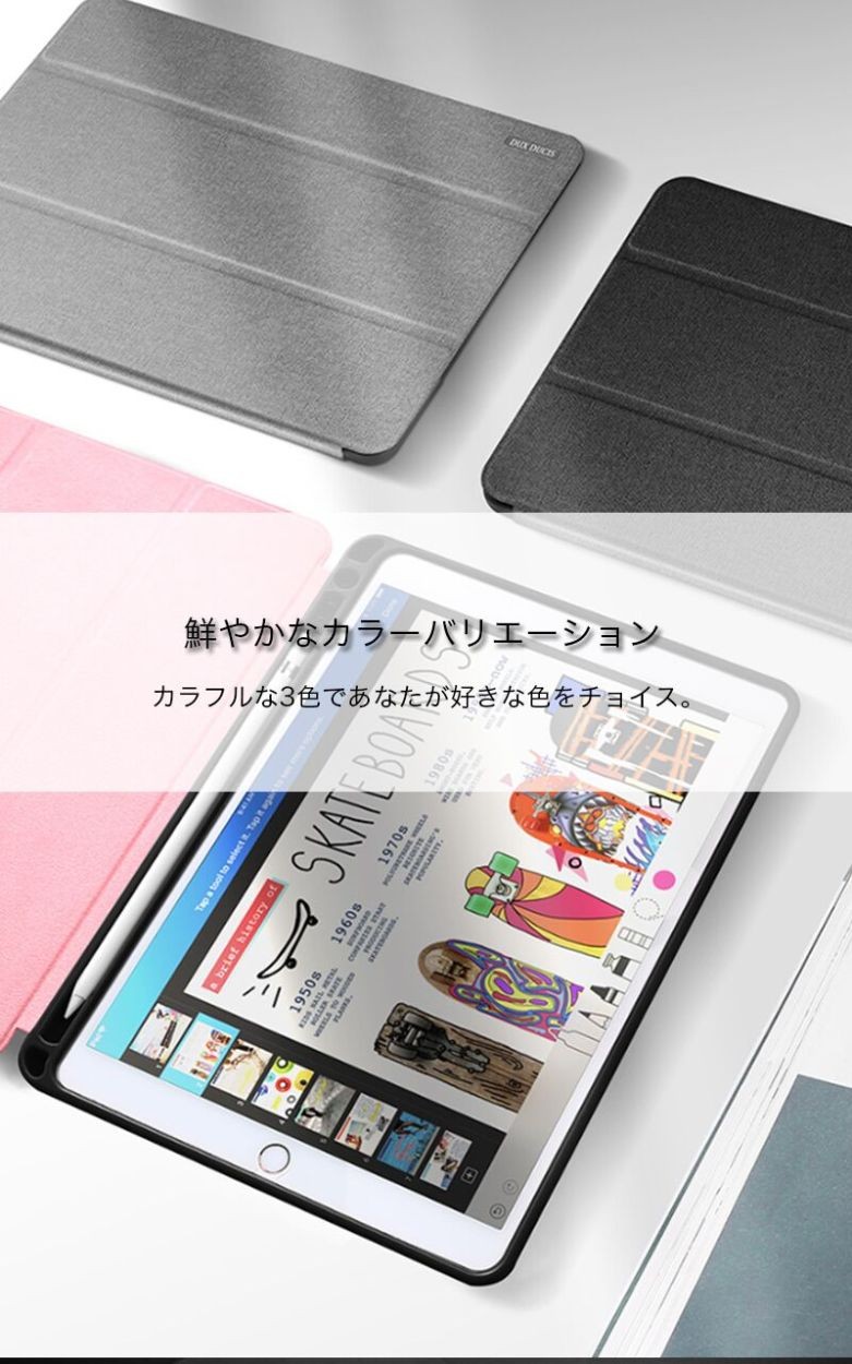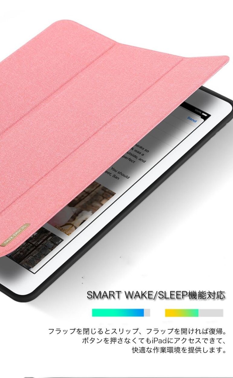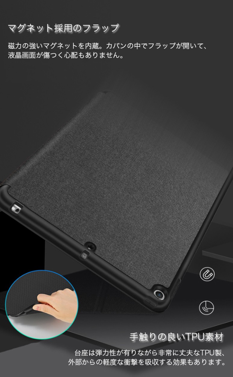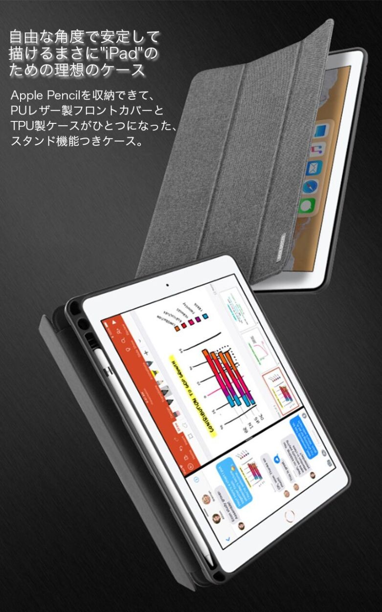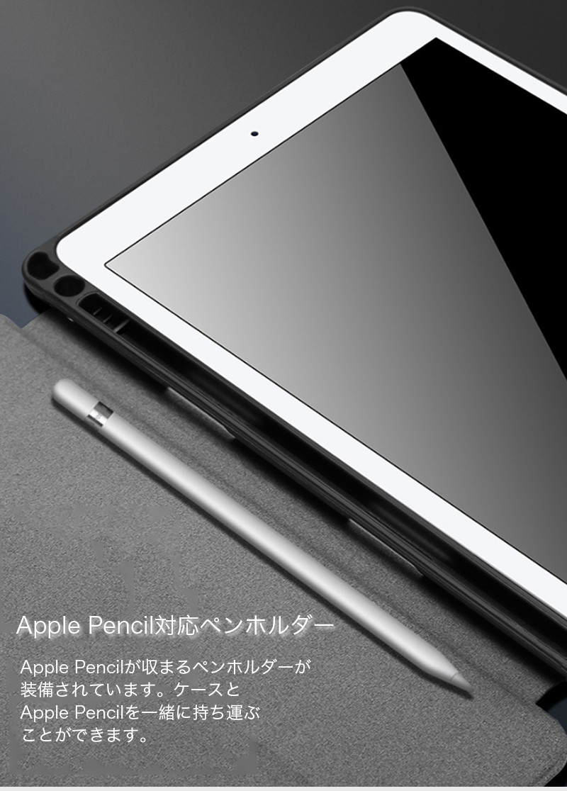 ★「対応機種」iPad「9.7インチ」「2017/2018新型」(アイパッド 9.7インチ 2017/2018新型)★「カラー」ブラック(黒)、グレー(灰)、ピンク★「商品特徴」Apple Pencilを収納できて、PUレザー製フロントカバーとTPU製ケースがひとつになった、スタンド機能つきケース。ケースにある穴にApple Pencilの先端を差し込めば、ペン立てとして使うことも可能。Apple Pencilが収まるペンホルダーが装備されています。ケースとApple Pencilを一緒に持ち運ぶことができます。★「キーワード」2017/2018 新型 iPad 9.7インチ ケース 手帳型 おしゃれ 耐衝撃 レザー製 カバー 財布型 衝撃吸収 Apple Pencilホルダ- ペン立て スタンド機能 放熱性 高級感 かっこいい タッチペン収納可 Apple Pencilホルダー付き 作業 便利 マグネット Smart Wake/Sleep機能対応 弾力性 カラフル