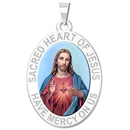 -. Binding : Jewelry -. Brand : PicturesOnGold.com -. Department : womens -. Feature : Available in Solid &14K Yellow or White Gold, or Sterling Silver / 17mm - size of a US dime, 19mm - size of a US nickel, 25mm - size of a US quarter / Made in the USA / All Medals are Solid 14k or .925 Sterling Silver / Free Jewelry Gift Box. Chain NOT Included. Ships in one day -. Label : PicturesOnGold.com -. Manufacturer : PicturesOnGold.com -. Model : ST222-OC -. MPN : ST222-OC -. PartNumber : ST222-OC -. ProductGroup : Jewelry -. ProductTypeName : FASHIONNECKLACEBRACELETANKLET -. Publisher : PicturesOnGold.com -. Studio : PicturesOnGold.com -. Title : Sacred Heart of Jesus Religious Medal Color - 2/3 X 3/4 Inch Size of Nickel, Sterling Silver