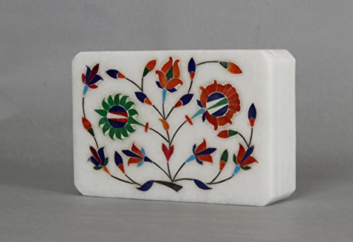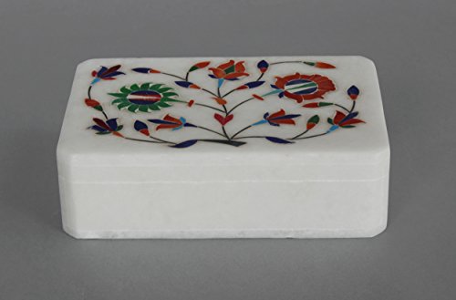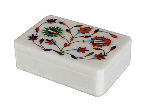 -. Feature : Dimensions: Length - 6 inches x Height - 2 inches x Width - 4 inches. Gorgeous, handmade box made from marble, with delicately carved & vibrant floral stone inlay work / Decorative & functional for safekeeping jewelry, trinkets, precious stones, pearls & other valued items. Use it to adorn your dressing table. / Also box can be used as cigar storage box, looks amazing left out on the table / Makes a perfect gift option for your beloved ones especially girls, for any occasion