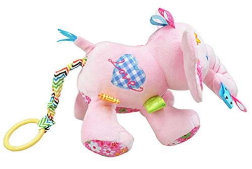 Music: pull elephant tail drawstring to get melody music, 60 seconds sweet melody when pull its tail, appease child's irritable mood. Rustle paper in two ears of elephant, develop baby to explore more things.