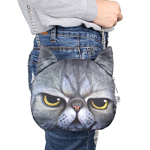 SUKUTU Women Girls Cute 3D Cat Face Crossbody Chain Purses Messenger Bags