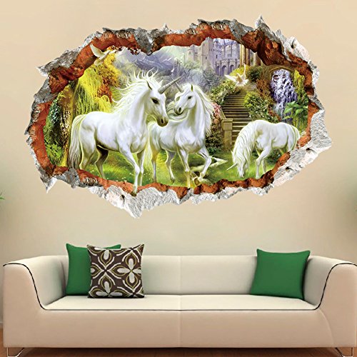 -. Title : Dragon Honor Wall Decals White Horse With Angle Break Through The Wall Vinyl Removable Mural Wall Sticker For Living Room Bathroom Decoration