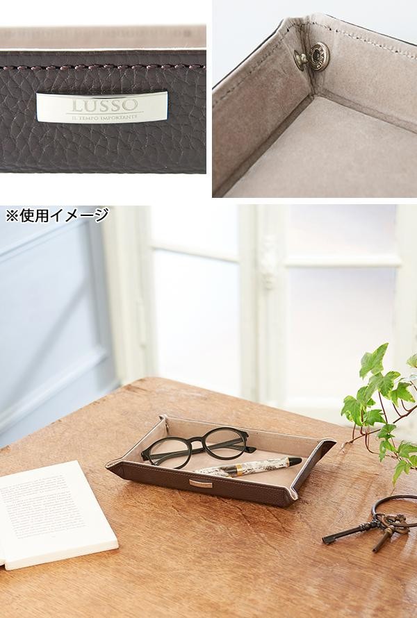 | 男性の何気ない毎日のワンシーンを、シックかつ贅沢に演出します。牛本革の高級感にメタルでアクセントをつけた、シンプルだからこそ際立つ洗練されたデザインです。 |
