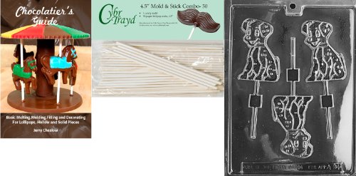 Cybrtrayd 'Dalmatian Lolly' Animal Chocolate Candy Mold with 50 4.5-Inch Lollipop Sticks and Chocolatier's Guide