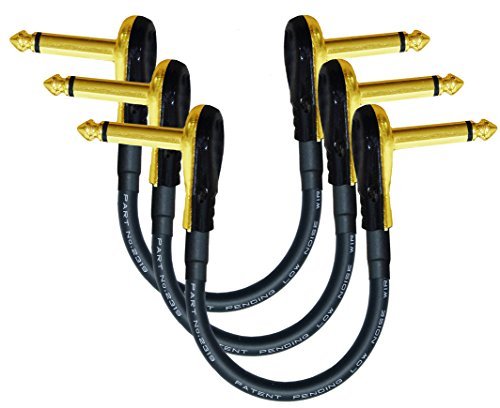 3 Units - Mogami 2319 - 5 Inch - Guitar Bass Effects Instrument, Patch Cable with Premium Gold Plated ¼ Inch (6.35mm) Low-Profile, Right Angled Pancake type TS Connectors