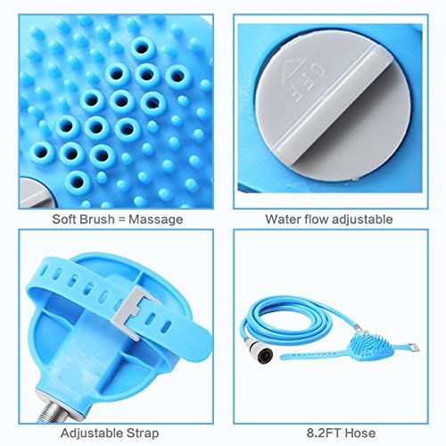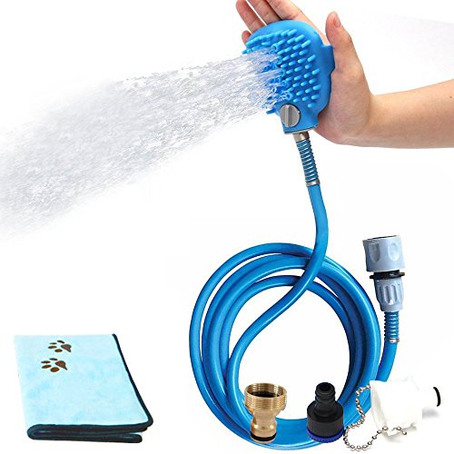 Studio : Bling Bling Publisher : Bling Bling Product Description Description: 【Gift for pet】: This dog bathing tool is combines bathe and massage, the brush is very soft, every touch like gently massage, reduce the stress of anxious pets; 【Save time and water】: One-size-fits-all strap attaches securely to your hand, perfect water pressure and convenient operation will save you a lot of time; 【Good design】: Multi-function pet bathing tool, you can switch it on or down with a rotary knob; 【High quality】: Our product material is high quality. In addition, there is coil spring in the connection of pipe and brush, which protect the bathing tool properly; 【Material】: silicon, ABS plastic, metal material; 【Color】: Blue. This handheld sprayer comes with 7.5 feet long hose and 3 hose adapters to fit 0.6 inches standard faucet Package Included: 1 x silicon brush 1 x blue hose 3 x faucet connector 1 x pet Bath Towel Please note: 2 hose adapters fit 0.6 inches standard external thread faucet and 1 brass adapters fit 0.9 inchs bathroom sink internal thread faucet and bathtub internal thread faucet, if not, you need to buy extra adapters, we hope this pet shower hose will satisfy you.