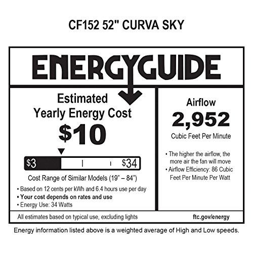 The 52" Curva Sky's edgy and compact design will fit perfectly in any modern décor. With the integrated light fixture and optional “no-light” plate, Curva Sky proves to be not only in vogue but also very practical. All Emerson residential ceiling fans feature a die-cast zinc hanging ball and bracket for durability that minimizes wobble and provides superior stability.Feature