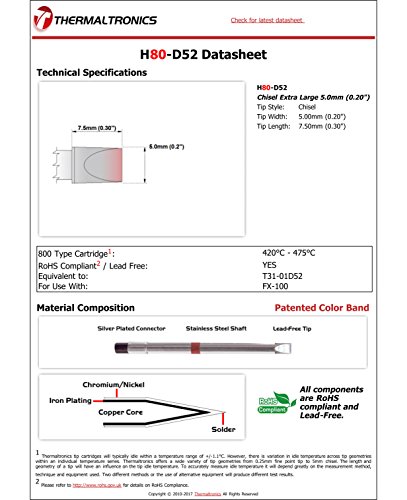 Thermaltronics H80-D52 Chisel Extra Large 5.0mm (0.20") interchangeable for Hakko T31-01D52