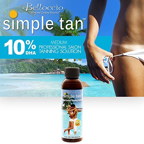 Simple Tan is a super premium natural tanning solution that delivers long-lasting beautiful natural-looking tans that last for 7 to 10 days. It's formulated with a special proprietary blend of vitamins and antioxidants that help revitalize, tighten and moisturize the skin while creating an even, flawless, natural-looking golden tan.