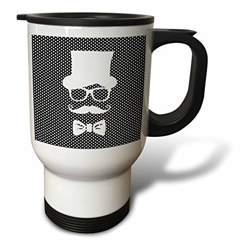 3dRose tm_220290_1 "Top Hat Spectacles Mustache & Bow Tie On Polkadots Stainless Steel" Travel Mug, 14 oz, Natural