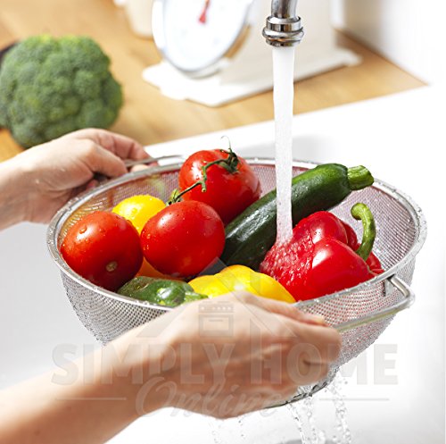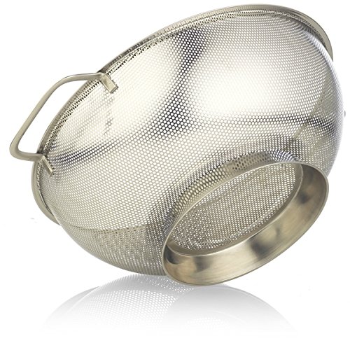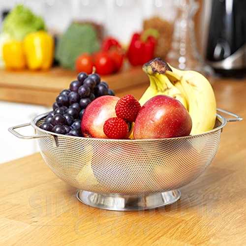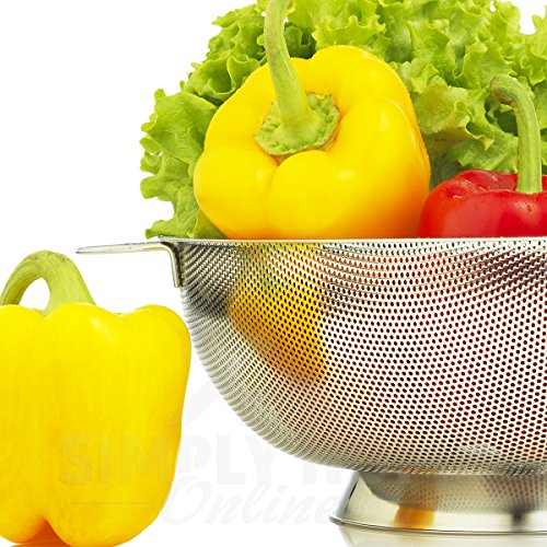 -. Brand : SIMPLYHOMEONLINE -. Feature : ★ Colander Michael 5 is massive safe 18/10 stainless steel colander. At nearly 14 inches in diameter with large handles and almost 4 inches in depth without base and 4.5 inches with strong base this silver strainer will serve almost any need that you may have in the kitchen. Sliver Strainer Michael 5 is a cool kitchen items. Diameter of the base is 6 inches. / ★ Strainer Michael 5 is one of the best a good looking strainer. Michael 5 is a silver side by side and it has a unique glossy finish which makes it very unique looking. So much so that you will be proud to hand colander Michael 5 on the pot rack next to the other prides of your kitchen. / ★ Colander Michael 5 is a unique model of five(5) safe stainless steel, because the micro holes are spaced further apart which doesn't affect its efficiency at draining liquids, but drastically improves its efficiency at retaining solids. Colander Michael 5 has a strong and large silver handles and strong stainless steel baze witch is important for the kitchen safe. / ★ Strainer Michael 5 is made so, that the clean up is so simple. Because colander Michael 5 was engineered to have no inaccessible surfaces, you can rest assure that not only will cleaning be it in the skink or dish washer (yes - it's made from safe stainless steel dishwasher safe) render your colander ready for its next use but it will be thorough and sanitary. / ★ Colander Michael 5 comes with a complementary gift. A microfiber towel to clean the colander Michael 5 with which is quite nice as some colanders can reek havoc on the structural integrity of most common household sponges. So not only are you getting a better colander but you are saving money on sponges -. ProductGroup : Kitchen -. ProductTypeName : KITCHEN -. Title : Stainless Steel 5-quart Colander
