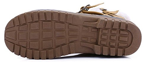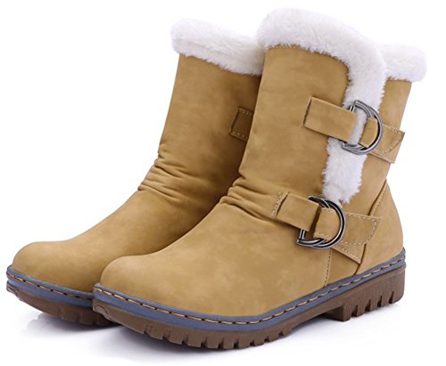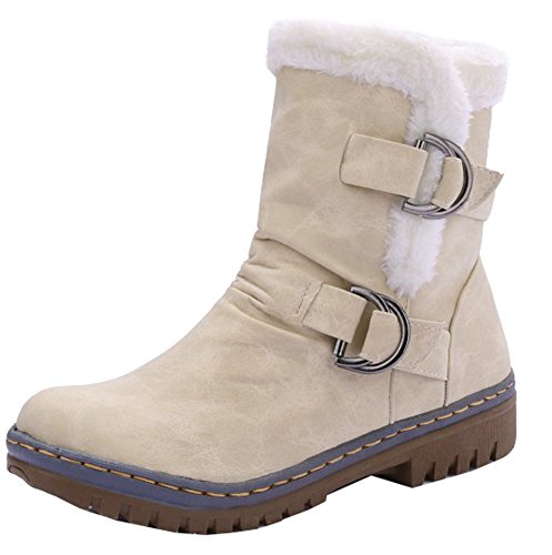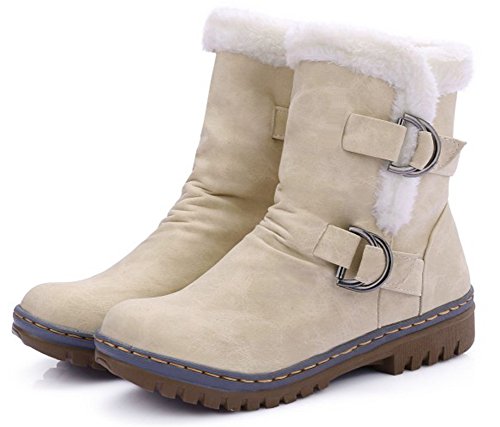 Binding : Apparel Product Description Winter is coming! Do you want a pair of boots both of fashion and warm? This pair of snow boots is a perfect choice. This lovely shoes features pull on closure and round toe. With their furry faux fur in the upper, you will look more elegant and cute. The faux fur lined will warm you all winter. The sole is made of good rubber. You will feel comfy in their soft bottom. The heels measure 1.4 inches. You will feel comfortable in their low heels. Its platform is about 0.75 inch. So you will not feel tired even walking all day long. They are of high quality and durable. Just pick them to show your beauty. 0