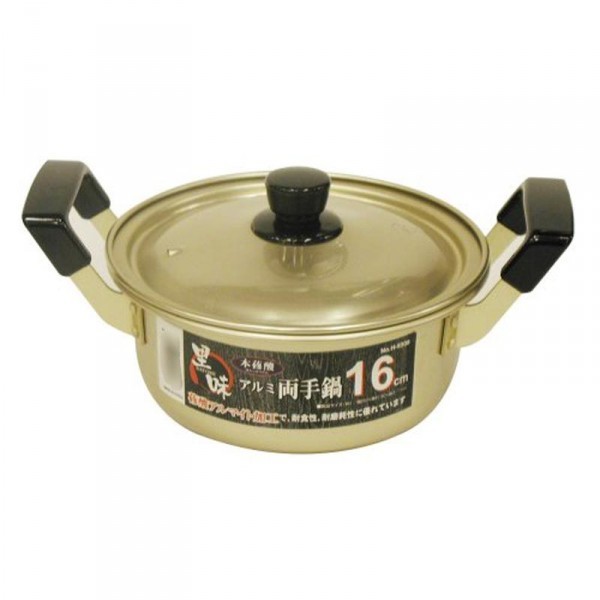 蓚酸アルマイト加工で、耐食性に優れた両手鍋16cmです。