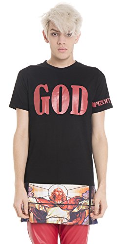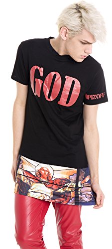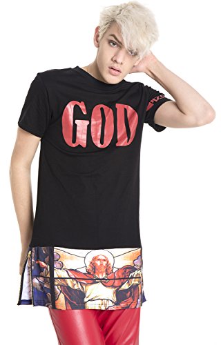 Pizoff Unisex Hipster GOD Jesus Religions Baroque Church Print Longline T Shirt