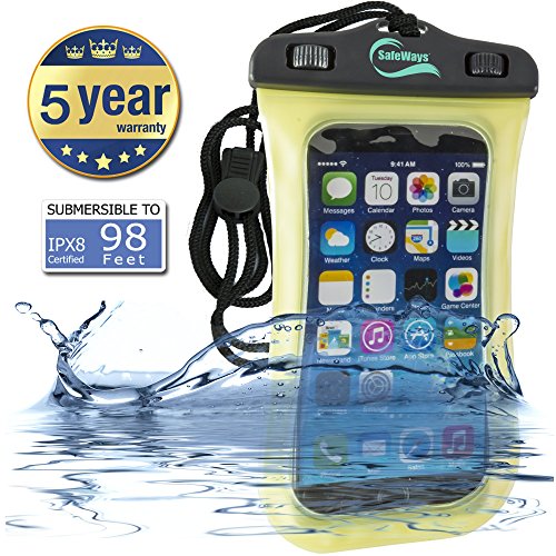 SafeWays Waterproof Seal Case Compatible With All iPhone Models, Samsung, HTC, Sony, Nokia - All Phones/Tablets/iPods/Cameras Up To 7-Inch