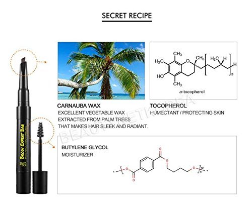 - THE BEST INGREDIENTS : Carnauba Wax to improve the quality of your natural eyebrows, Tocopherol to protect your skin from makeup and pollution, and Butylene Glycol to moisturize eyebrow hairs and skin.