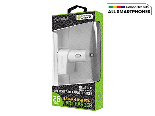 Universal 26W 5.2 Amp 4-Port USB Car Charger Adapter With Smart IC Chip White