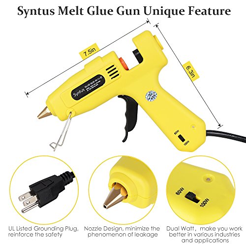 Syntus 60/100 Watt Hot Glue Gun with 20 Pieces 8-inch Glue Sticks Dual Watt Melting Adhesive Glue Gun Kit for DIY, Craft, Sealing, Repairs, Light and Heavy Duty, Yellow