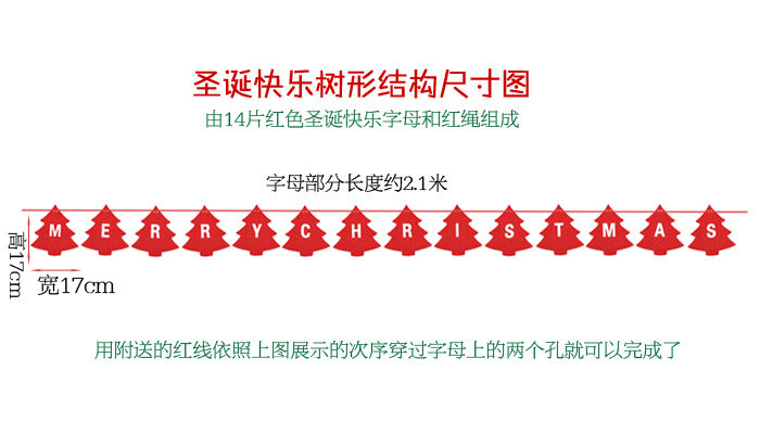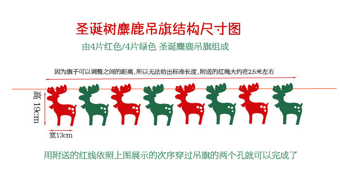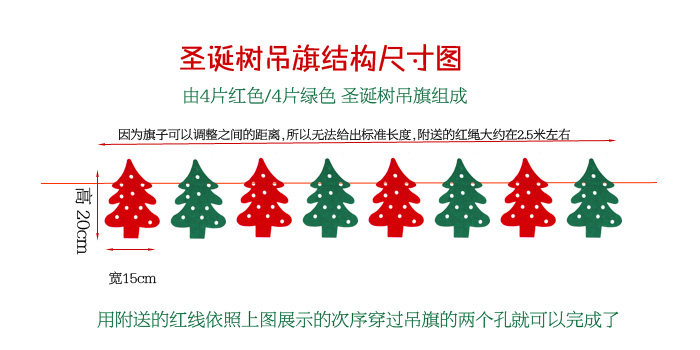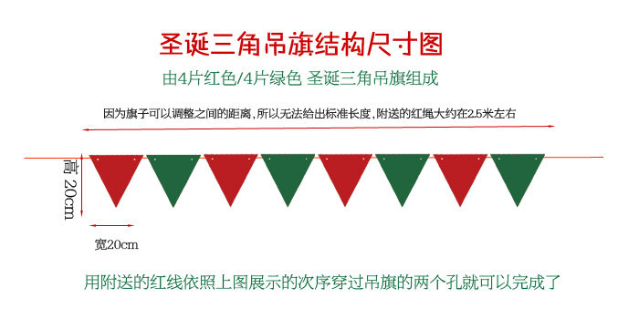 港恒圣诞装饰用品 圣诞节吊旗 无纺布三角挂旗 布艺门窗吊旗拉串