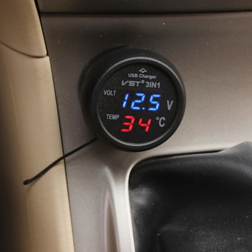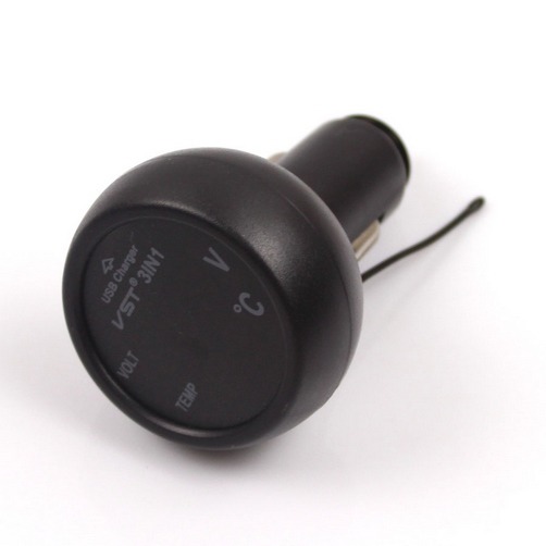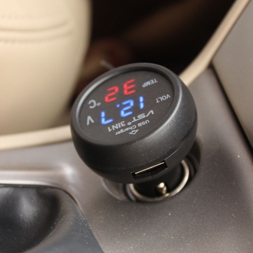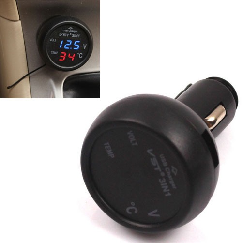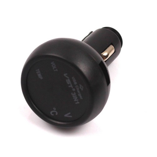 3 in 1 Digital LED Voltmeter Thermometer USB Car Charger Battery Tester Monitor