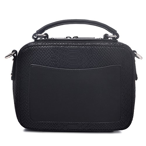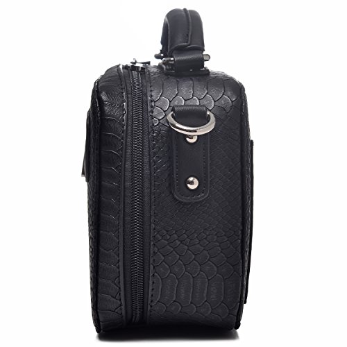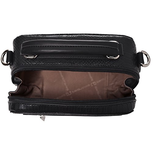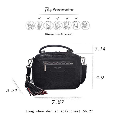 -. Feature : DAVIDJONES Women hard case shaped baguette cross-body bag on a crocodile FAUX LEATHER design / EXCELLENT CRAFTMANSHIP:clean stitching and high quality metal accessories :P.R.Inted logo letter,signature zippers and a matching tassel accent the appearance / TONS OF STORAGE COMPARTEMENTS in a compact size:1 top zippered main pocket and 1 zip in front which decent this box bag;1 slip on back for easy access;1 ID window slip and 1 zippered slip inside for security essentials;enough room for your cell phone, wallet, makeup,tablets and toiletries; / TWO WAYS OF USE:1 sewed top short handle for portable and 1 55inches adjustable and removable cross-body strap for carrying on shoulder / Perfect for using in office, school, travel or any other daily occasions;dating preferred style