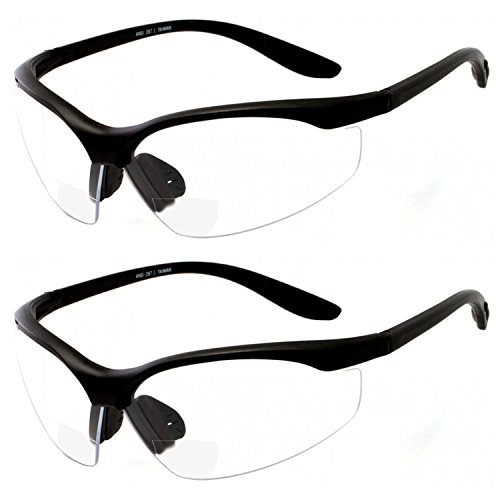2 Pairs Bifocal Safety Glasses Clear Lens with Reading Corner - Non-Slip Rubber Grip Diopter/+1.50