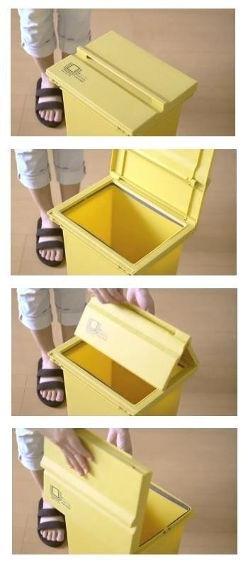 開け方がニ通りある、シンプルなダストボックス。キャスター付きで使い勝手は抜群。