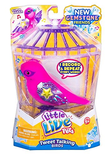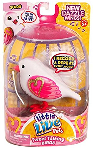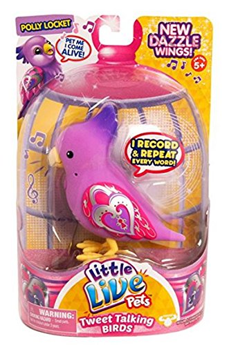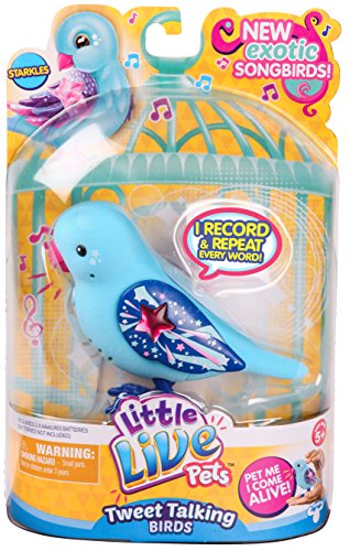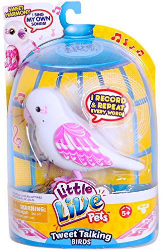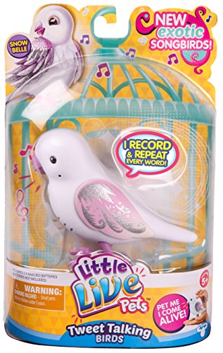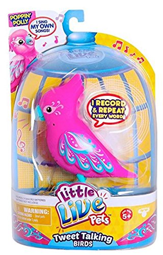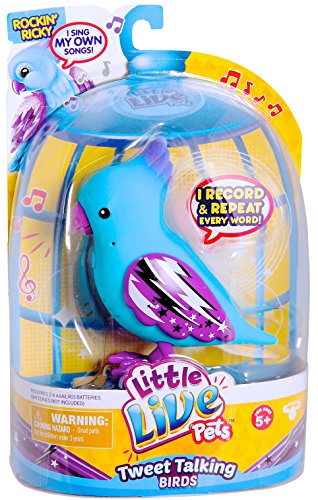 Little Live Pets Tweet Talking Birds are the cool pet friends that move, feel and sound so REAL! The Tweet Talking Birds are flocking together to say hello. Your pet bird makes 30 real bird noises and also has some fun words built into them. So get ready to interact with your beautiful new friends! Pack includes one Bird, 2 AA batteries and an instruction booklet.Feature