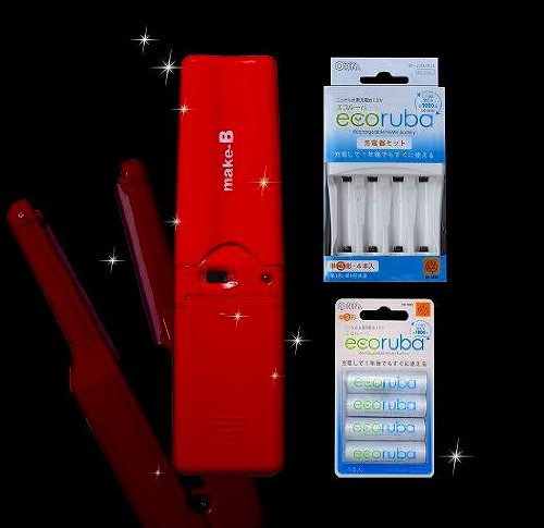 -. Feature : 超コンパクトヘアアイロン!!本体カバーの一体型でわずか13cm アイコ(レッド)はいつでも簡単どこでも! / このサイズで、マイナスイオンが発生、髪に優しいクッションセラミックプレートを使用で!!ツヤツヤ!サラサラ! / 約20秒で150~200℃の本格プロ仕様!! / アイコ&充電器&充電式電池(単三4本付属)のフルセット!!勿論充電式のみにありがちな電池切れも乾電池でも使えるから心配なし! / アーティスト絶賛!!驚きの価格で登場!!