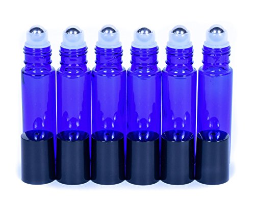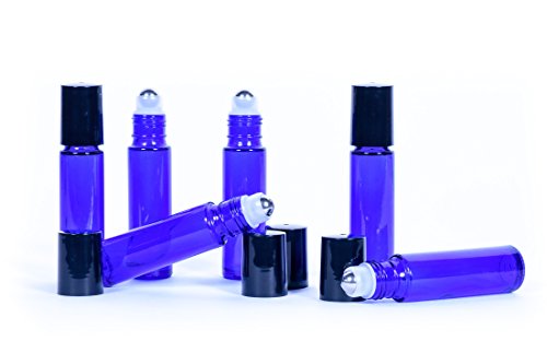 Everything4Oils Cobalt Blue 10ml Roll on Bottles for Essential Oils with Stee...