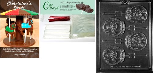 Cybrtrayd Snowglobe Lolly Assorted Chocolate Mold with Chocolatier's Bundle of 25 Lollipop Sticks, 25 Cello Bags, 25 Red Twist Ties and Chocolatier's Guide